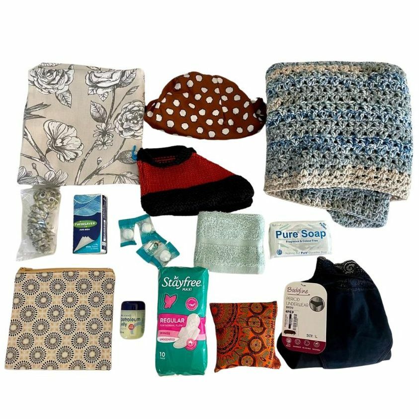 Ladies Comfort Care Bag's: Drawstring bag/Ziploc, facecloth, soap, hair comb, snack/sweets, beanie, bedsocks/shawl/mittens, worry worm, comforting message